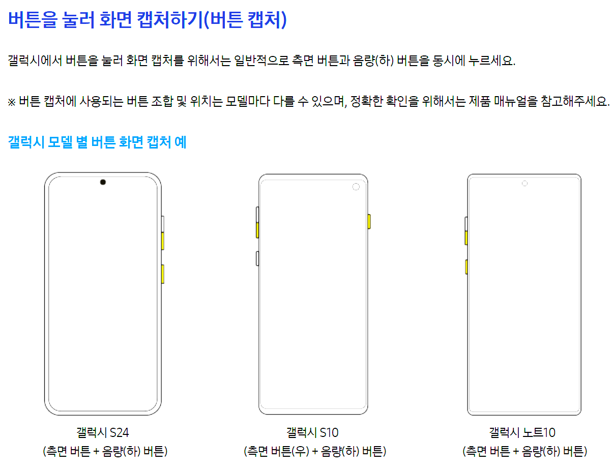 스크롤 캡쳐를 사용하기 전에 먼저 갤럭시 폰의 기본 화면 캡쳐 방법을 알아두는 것이 좋습니다.