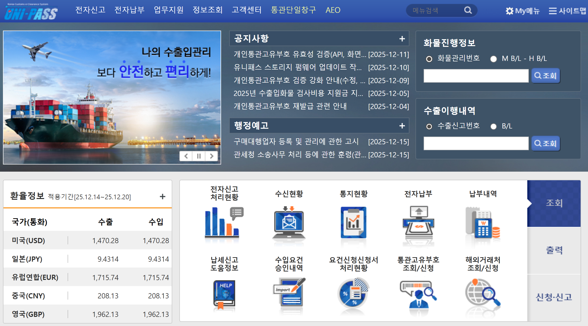 관세청 유니패스 사이트 이용 개요