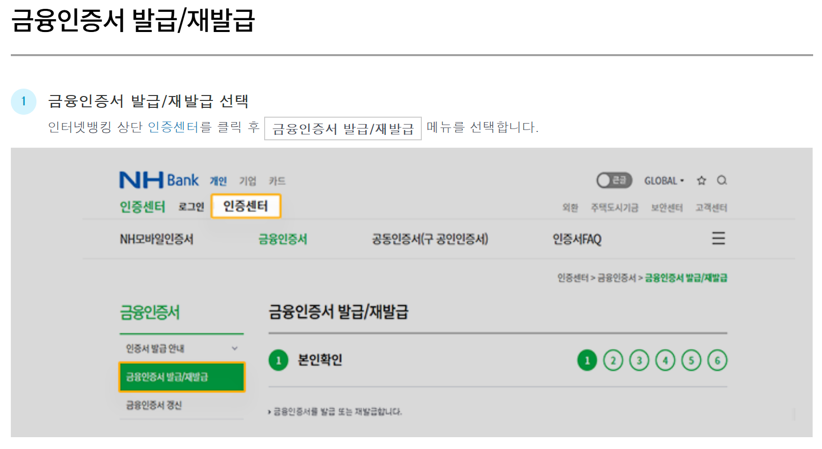 재발급 시에는 최초 발급과 동일한 절차가 적용되며, 이용 은행 관계없이 동일한 방식으로 진행됩니다.