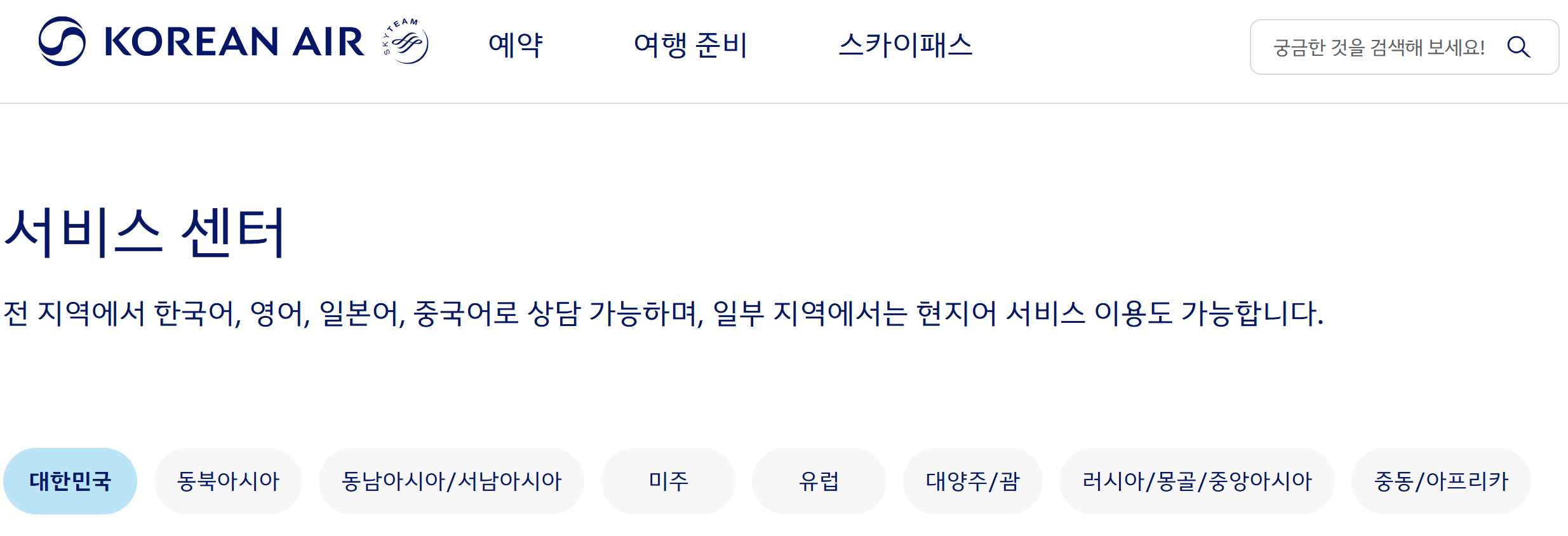 대한항공 고객센터 국내 대표 번호는 1588-2001입니다.