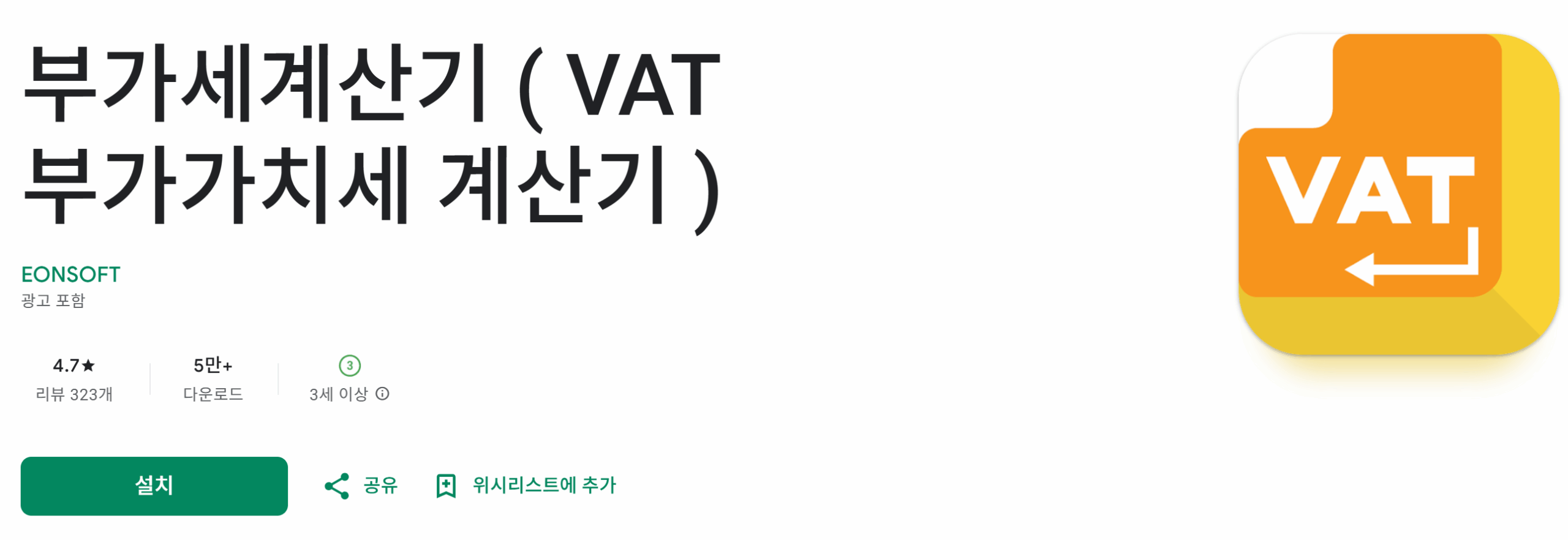 부가세 계산기 어플은 앱스토어와 구글 플레이에서 무료로 다운로드할 수 있습니다.