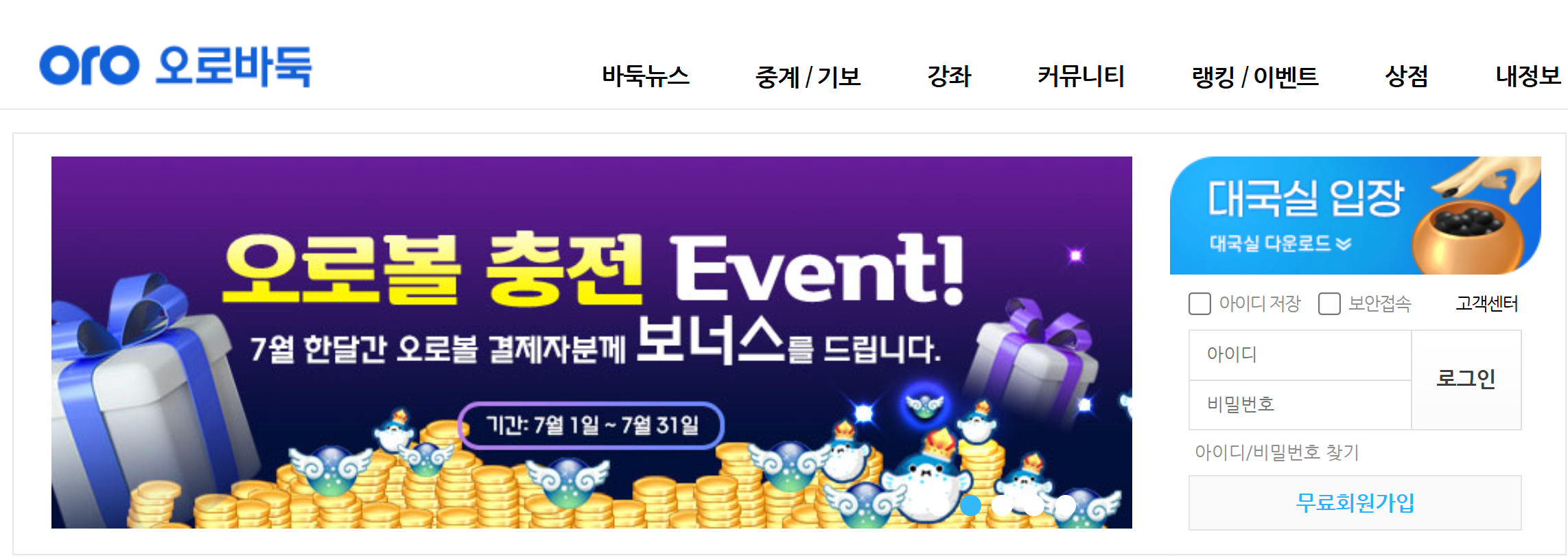 1. 사이버오로바둑 공식 홈페이지 방문하기