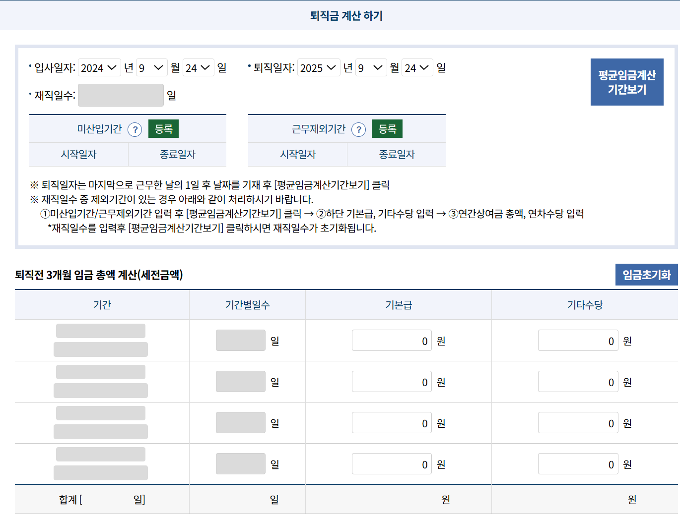 퇴직금은 일반적으로 ‘퇴직 전 3개월간의 평균임금’에 ‘근속연수’를 곱하여 계산합니다. 하지만 이 평균임금에는 연장근로수당, 야간근로수당, 휴일근로수당 등 다양한 수당이 포함되기 때문에 직접 계산하기는 매우 복잡합니다. 따라서 정확한 계산을 위해 고용노동부의 퇴직금계산기를 이용하는 것이 가장 좋습니다. 세전 퇴직금은 이 계산기를 통해 쉽게 확인할 수 있으며, 여기에 소득세와 지방소득세가 부과되어 세후 퇴직금이 최종적으로 결정됩니다.