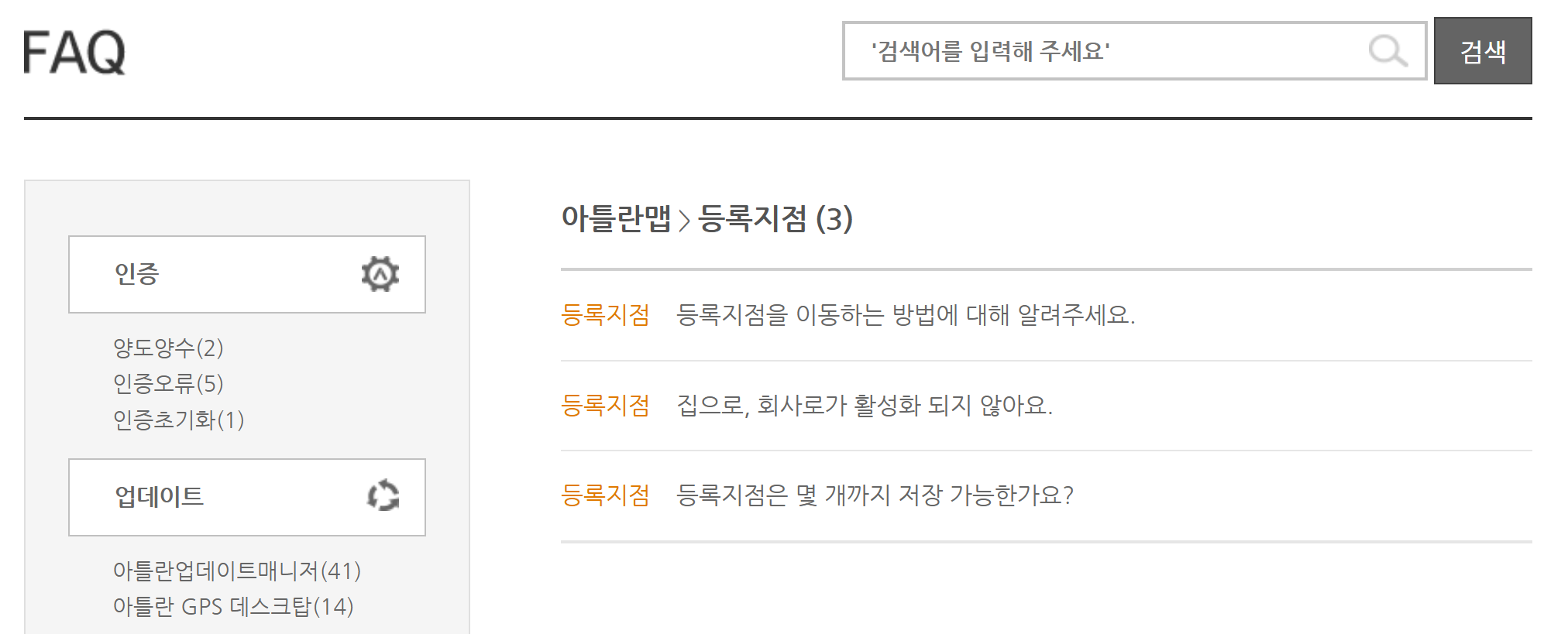 | 지도 데이터 없음 표시 | 시리얼 번호 인증 오류 | 아틀란 홈페이지에서 기기 인증 상태 재확인 |