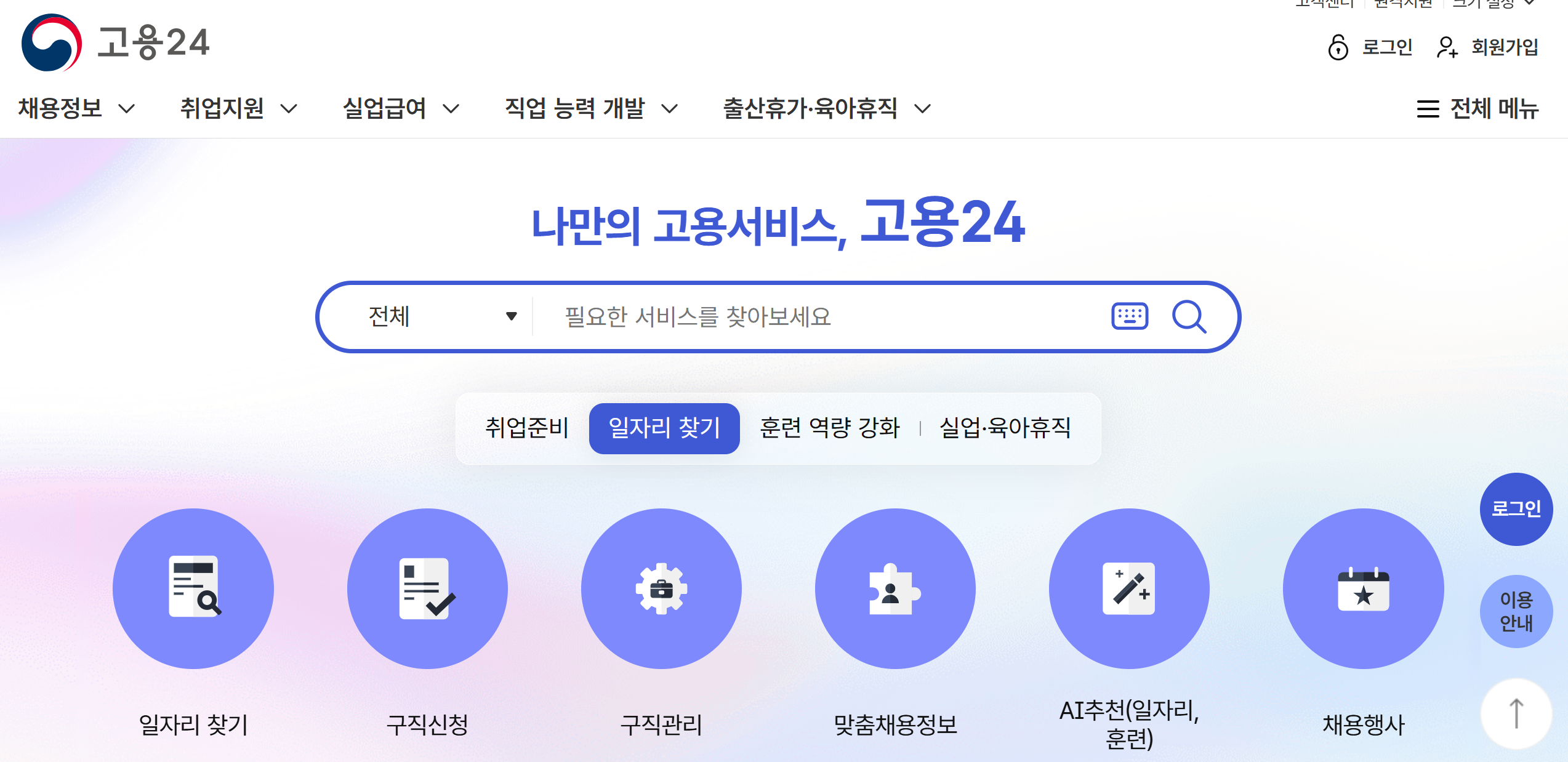 | 고용 정책 안내 | 청년·중장년층·여성 등 맞춤형 취업 지원 정책 확인 |
