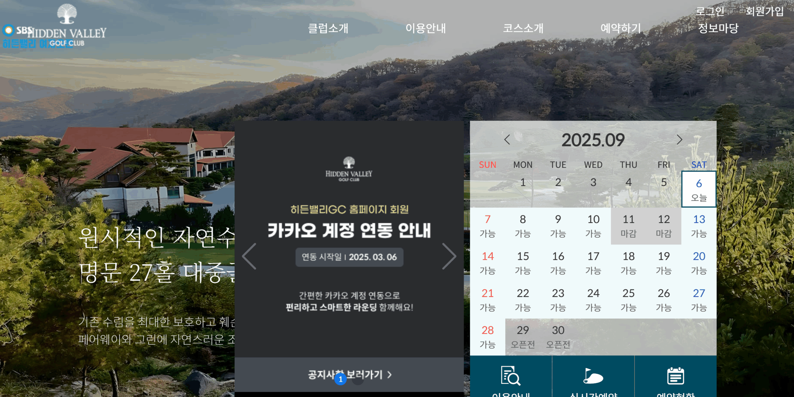진천 히든밸리CC 예약은 공식 홈페이지를 통해 가능하며, 회원과 비회원 모두 예약 시스템을 활용할 수 있습니다.