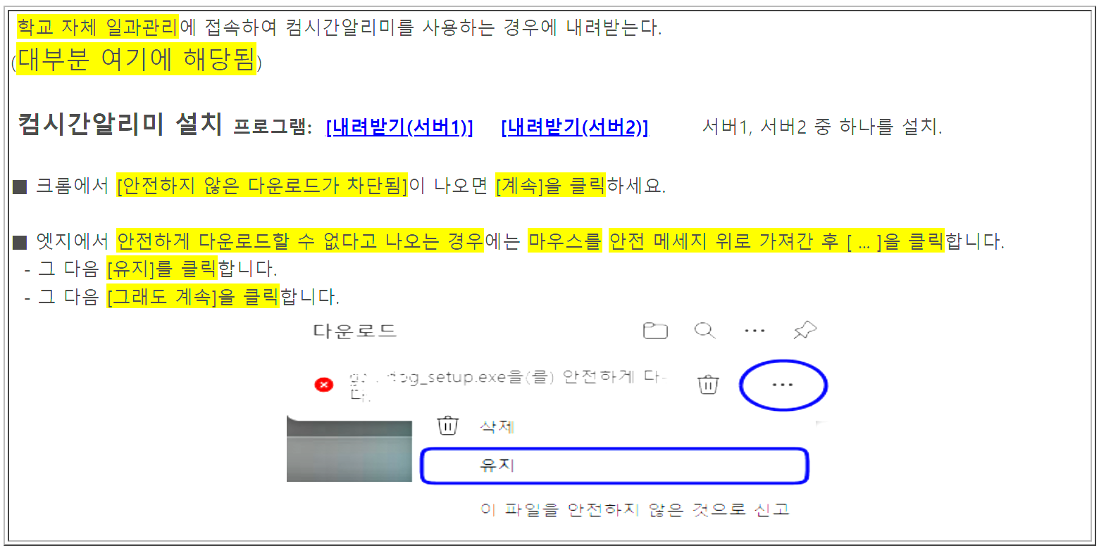 컴시간알리미 프로그램을 설치하기 전에 몇 가지 확인할 사항이 있습니다.