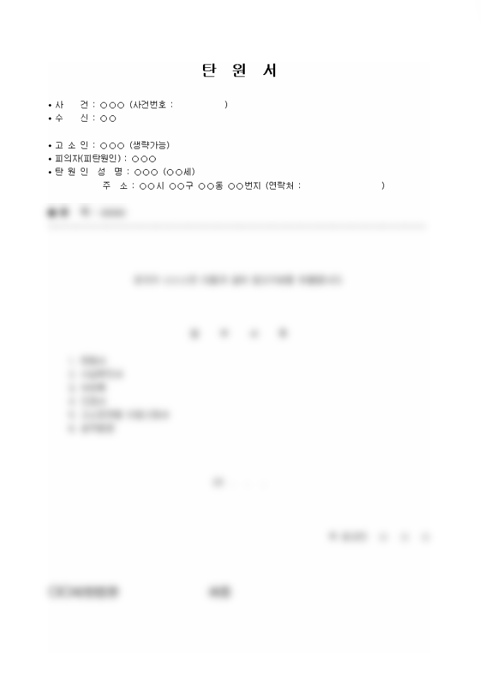 - 기본 구성: 제목, 수신 기관, 작성자 인적사항, 탄원 내용, 날짜, 자필 서명