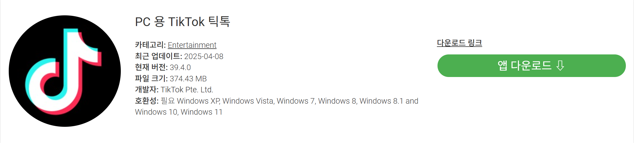 [다운로드] 틱톡 PC 버전