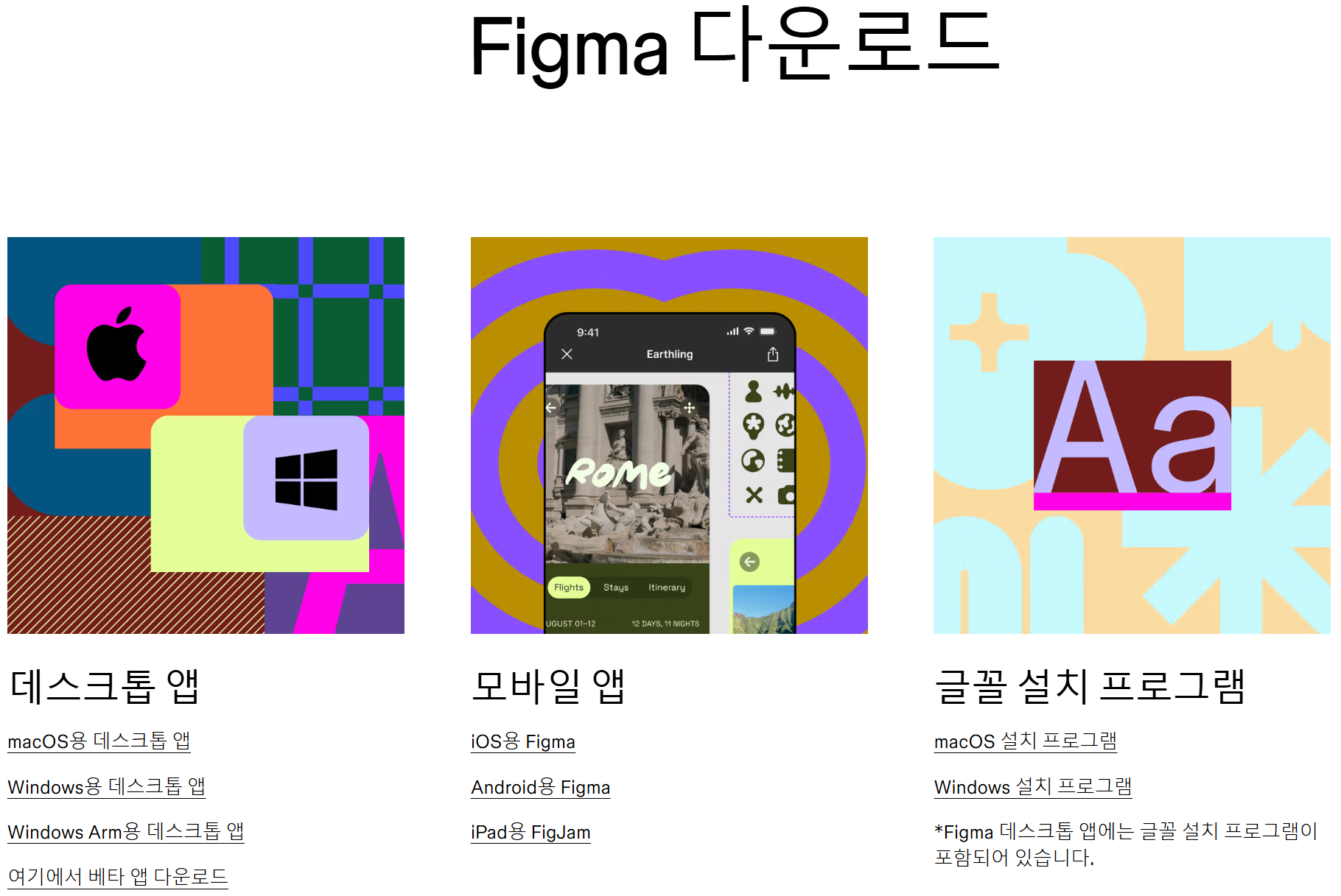 - 1단계: 피그마 공식 웹사이트 접속 먼저 웹 브라우저를 열고 피그마 공식 웹사이트(https://www.figma.com/downloads/)에 접속합니다.