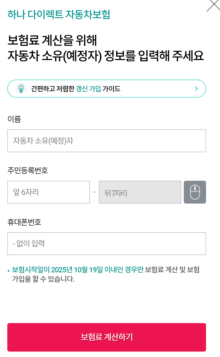 1. 하나손해보험 다이렉트 자동차보험 가입 방법