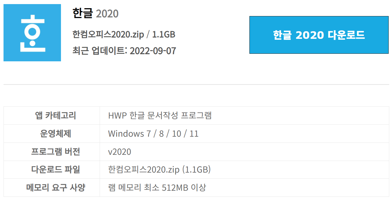[다운로드] 한글 2020