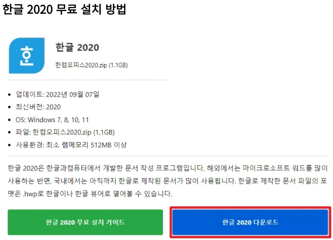 1. 한글 2020 무료 체험판 다운로드 및 설치 방법