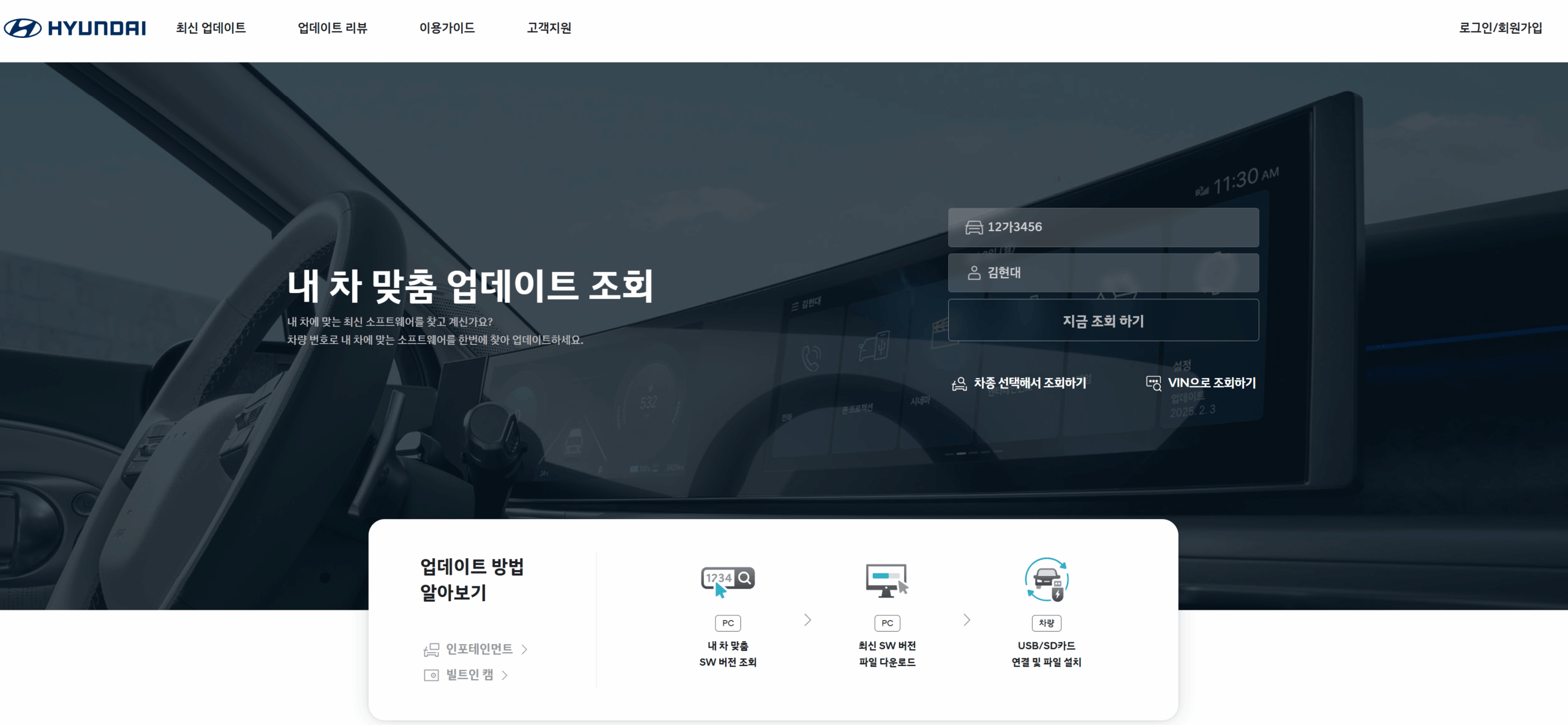 - 홈페이지 접속 및 회원가입/로그인: 현대자동차 내비게이션 업데이트 공식 홈페이지에 접속하여 회원가입 또는 로그인을 합니다.